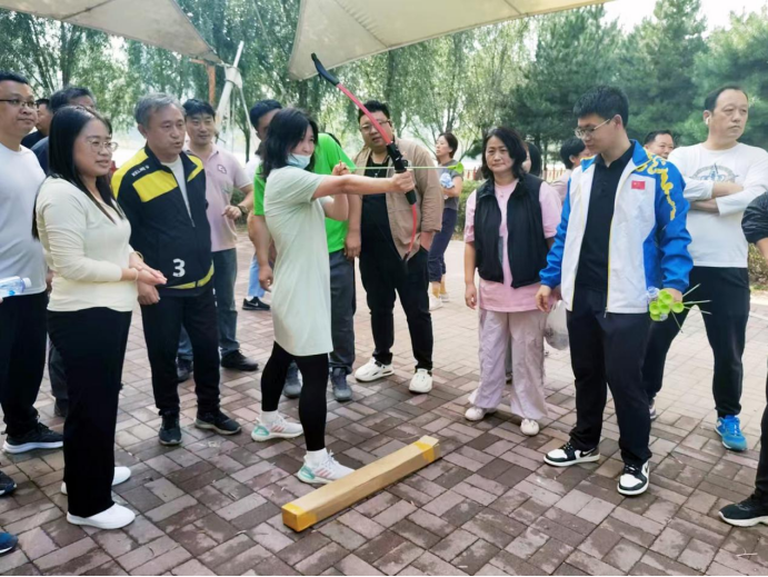 在终点处的团体挑战赛现场,各部门教职工团结一心,以十足的干劲和饱满的热情投入比赛。团体赛要求以部门为单位参赛,每组需满 6 人,且团体总分达到 30 环以上才有资格参与排名。经过一番激烈比拼,体育部凭借出色发挥荣获团体一等奖;机械工程学院与图书馆表现优异,获得团体二等奖;后勤中心、外语学院、团继研、新能源学院则凭借坚韧的毅力和出色的协作,斩获团体三等奖。